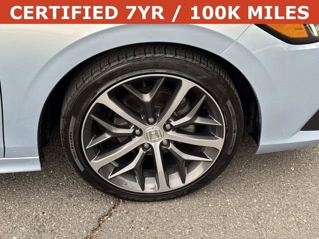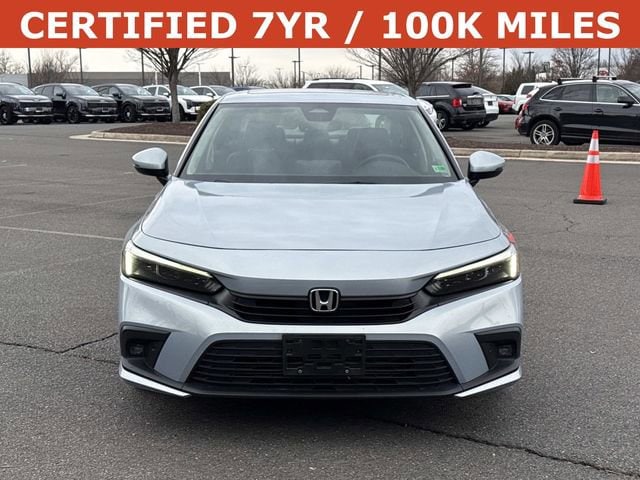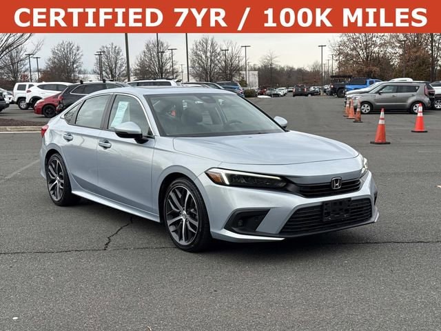 The 2022 Honda Civic Touring sits at the top of the Civic lineup, offering a refined blend of comfort, performance, and advanced technology. Powered by a responsive turbocharged engine producing around 180 horsepower, it delivers smooth acceleration while maintaining excellent fuel efficiency, averaging roughly the mid-30s MPG on the highway. The Touring trim elevates the driving experience with leather-trimmed seating, a power moonroof, heated front seats, dual-zone climate control, and a premium Bose sound system. A large touchscreen with navigation, wireless Apple CarPlay and Android Auto, wireless charging, and a fully digital gauge display give the cabin a modern, upscale feel that stands out in the compact sedan class
