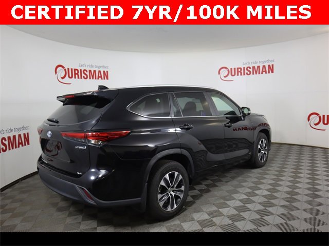 Certified. Black 2023 Toyota Highlander Hybrid XLE AWD eCVT 2.5L I4 PDI Hybrid DOHC 16V LEV3-SULEV30 CARFAX One-Owner. Clean CARFAX. CERTIFIED 7 YEAR/ 100,000 MILE WARRANTY.