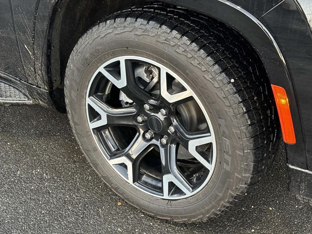 10 Speakers, 118 MPH Maximum Speed Calibration, 2 Speed On Demand Transfer Case, 3 Panel Sunroof, 3rd row seats: bench, 4-Wheel Disc Brakes, 60/40 Power Recline 3rd Row Seat, ABS brakes, Adjustable Roof Rail Crossbars, Air Conditioning, All-Season Floor Mats, Alloy wheels, AM/FM radio: SiriusXM with 360L, Anti-whiplash front head restraints, Apple CarPlay/Android Auto, Audio memory, Auto Adjust In Reverse Exterior Mirrors, Auto High Beam Headlamp Control, Auto Power Folding Exterior Mirrors, Auto Power-Folding Mirrors, Auto-dimming door mirrors, Auto-Dimming Exterior Driver Mirror, Auto-dimming Rear-View mirror, Auto-leveling suspension, Automatic temperature control, Black Exterior Accents, Black Roof, Brake assist, Bumpers: body-color, Cargo Tray, Compass, Cruise control, Delay-off headlights, Driver door bin, Driver vanity mirror, Driver's Seat Mounted Armrest, Dual front impact airbags, Dual front side impact airbags, Electronic Rear Limited Slip Differential, Electronic Stability Control, Emergency communication system: Jeep Connect, Exterior Mirrors Approach Lamps, Exterior Mirrors w/Memory, Exterior Mirrors w/Supplemental Signals, Four wheel independent suspension, Front anti-roll bar, Front Bucket Seats, Front Center Armrest w/Storage, Front dual zone A/C, Front fog lights, Front License Plate Bracket, Front reading lights, Fuel Tank Skid Plate Shield, Fully automatic headlights, Garage door transmitter, Genuine wood console insert, Genuine wood dashboard insert, Genuine wood door panel insert, Heated door mirrors, Heated Exterior Mirrors, Heated front seats, Heated rear seats, Heated steering wheel, Heavy-Duty Engine Cooling, Illuminated entry, Knee airbag, Leather Trimmed Bucket Seats, Low tire pressure warning, Memory seat, Navigation System, Normal Duty Suspension, Occupant sensing airbag, Outside temperature display, Overhead airbag, Overhead console, Overland Appearance Package, Overland Exterior Accents, P&P Park & Unpark Assist w/Stop System, Panic alarm, ParkView Rear Back-Up Camera, Passenger door bin, Passenger seat mounted armrest, Passenger vanity mirror, Power adjustable front head restraints, Power door mirrors, Power driver seat, Power Liftgate, Power passenger seat, Power steering, Power windows, Quadra-Lift Air Suspension, Quick Order Package 25P Overland, Radio data system, Radio: Uconnect 5 Nav w/10.1" Display, Rain sensing wipers, Rear air conditioning, Rear anti-roll bar, Rear dual zone A/C, Rear reading lights, Rear seat center armrest, Rear window defroster, Rear window wiper, Reclining 3rd row seat, Remote keyless entry, Removable Rear Tow Hook, Security system, Selec-Speed Control, Semi Active Damping, Side Distance Warning, Speed-sensing steering, Speed-Sensitive Wipers, Split folding rear seat, Steering wheel memory, Steering wheel mounted audio controls, Surround View Camera System, Tachometer, Telescoping steering wheel, Tilt steering wheel, Traction control, Trailer Brake Control, Trailer Hitch Zoom, Trip computer, Turn signal indicator mirrors, Vapor Tow Hooks, Variably intermittent wipers, Ventilated front seats, Voltmeter, Wheels: 20" x 9.0" Machine Face Painted Aluminum, Wheels: 20" x 9.0" Premium 2 Aluminum.